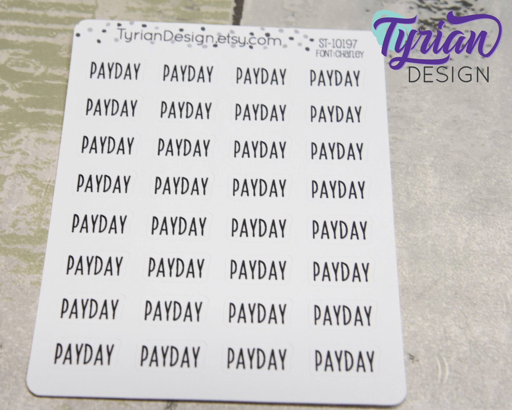 Payday Stickers for Planners and Journals. Text Payday sticker, track paychecks? Great for Journaling and Planning - Charlie Font