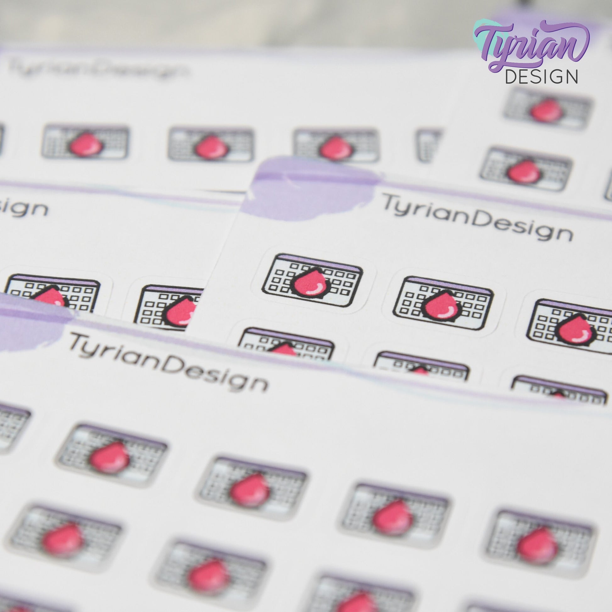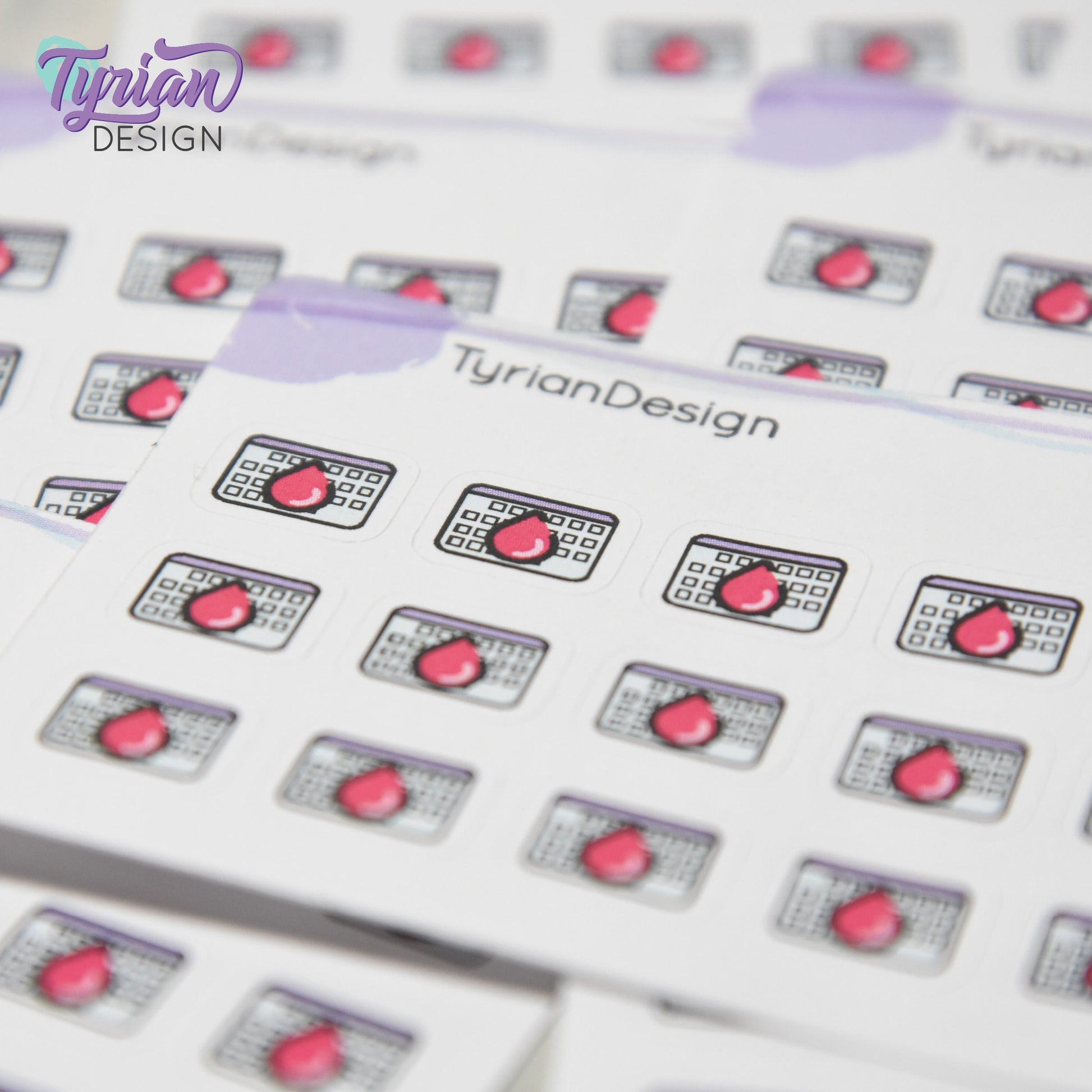 Period Stickers | Tiny Menstrual stickers | Mini sheet | 18 stickers | .47 x .37" each | Period Tracking icon | White or Clear Matte