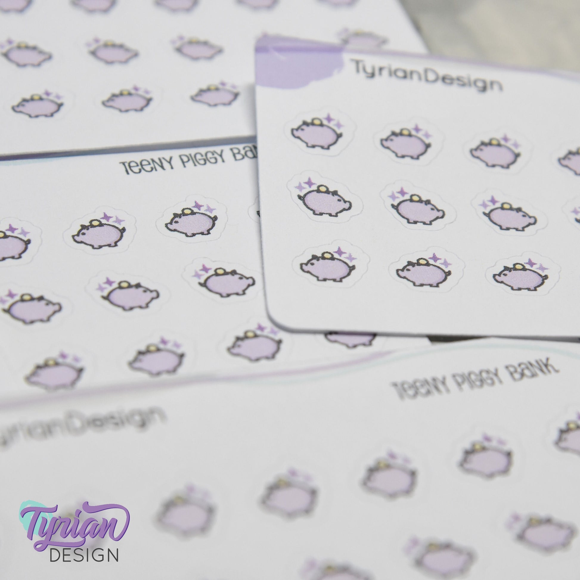 Piggy Bank Stickers | Tiny Savings stickers on a mini sheet | 21 stickers | .38 x .36" each | Pig icon sticker | White or Clear Matte
