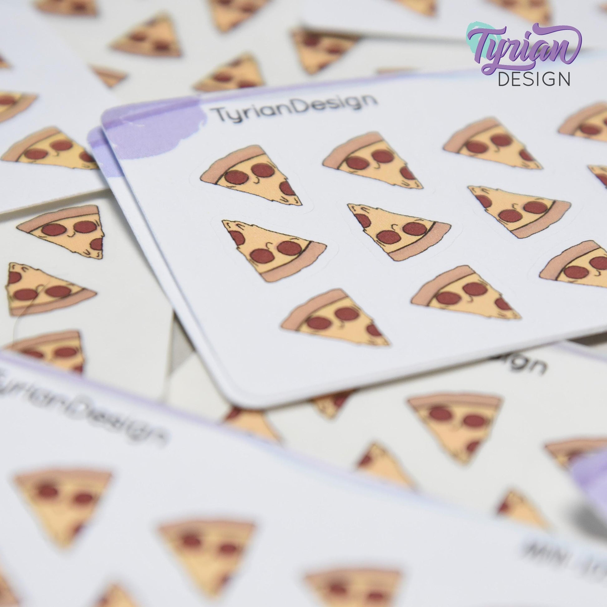 Pizza Stickers | Mini Sheet of Pizza Slice Time | 15 Stickers | .5 x .57" each | 3.375" x 2.125" Mini Sheet | White or Clear Matte