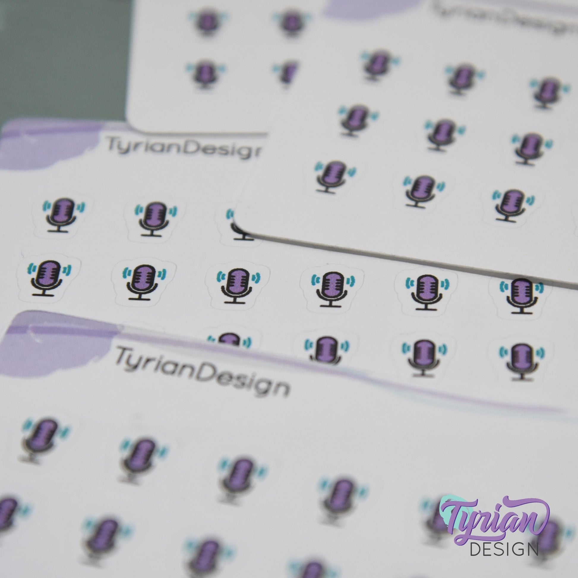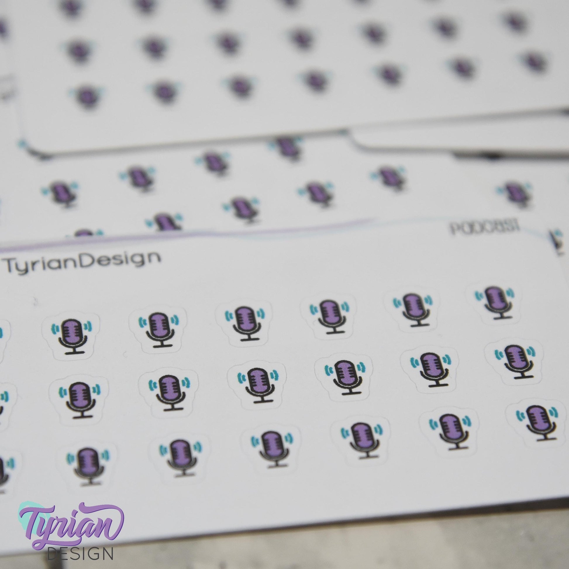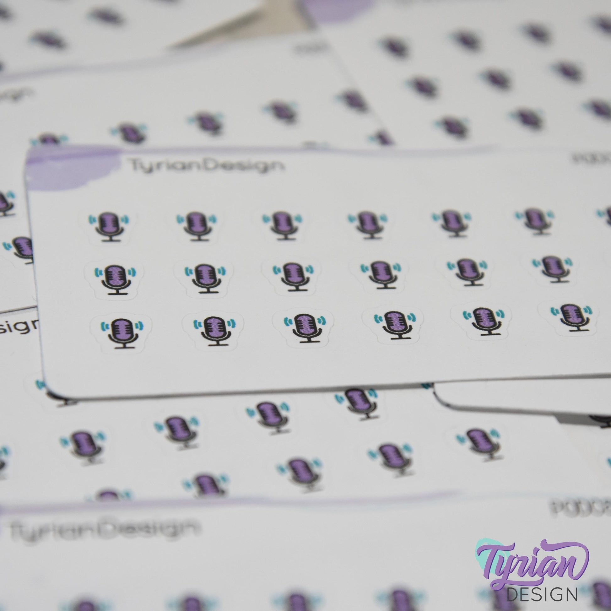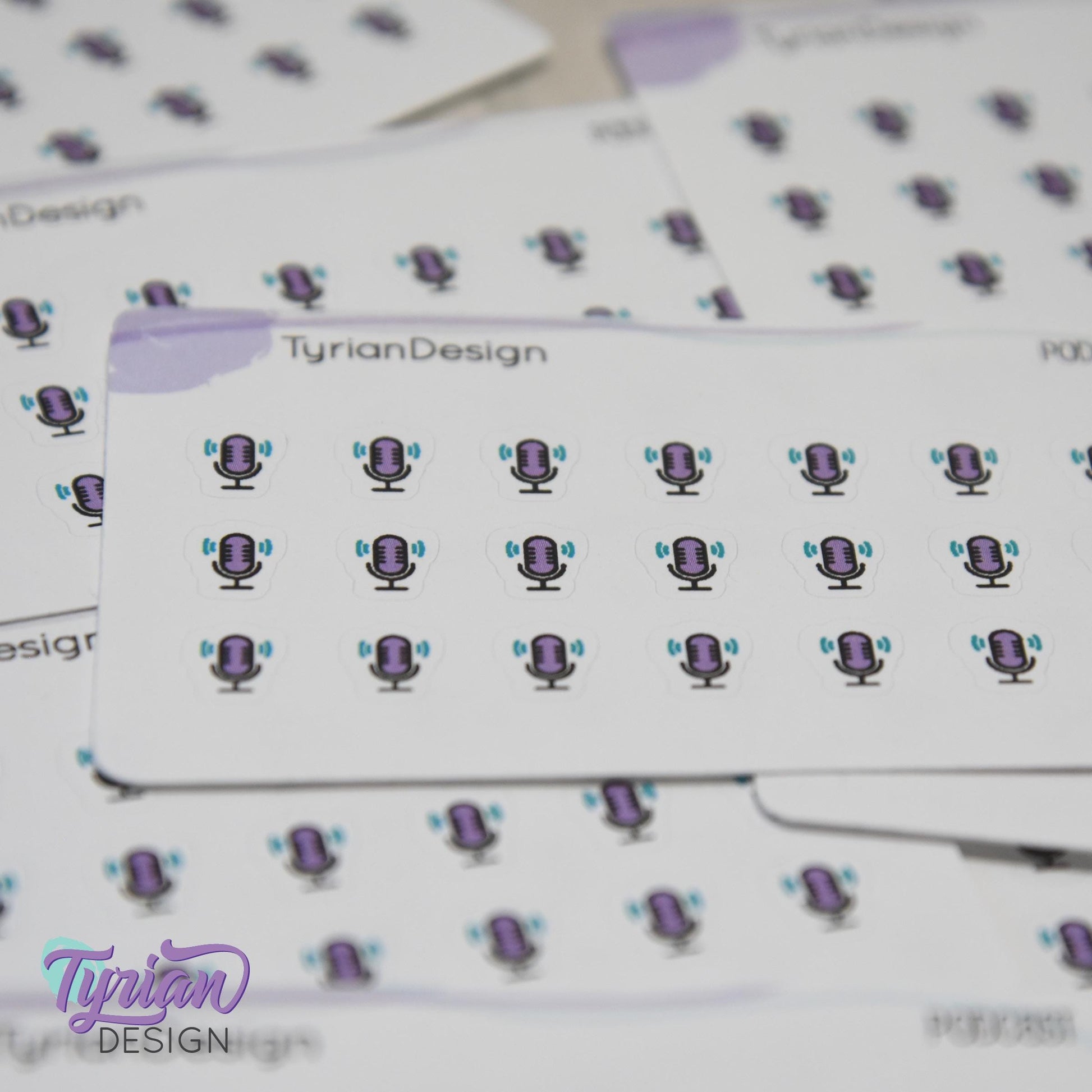 Podcast Stickers | Tiny Icon Microphone stickers on a mini sheet | 21 stickers | .3 x .36" each | Voice icon sticker | White or Clear Matte