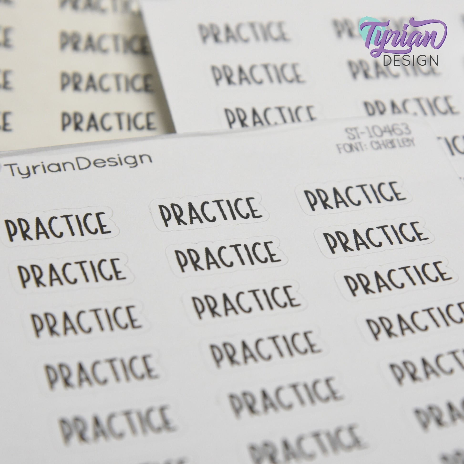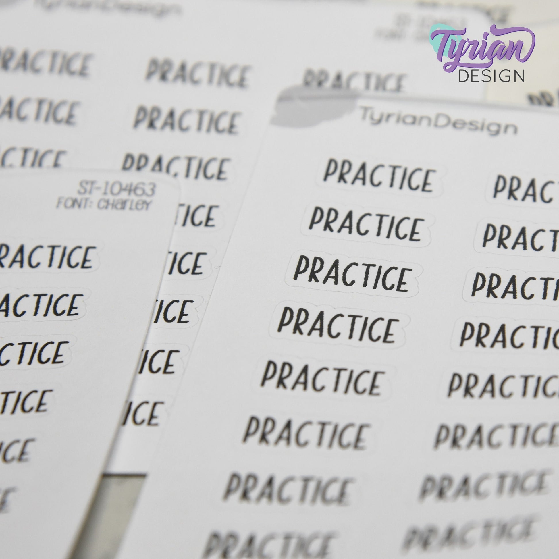 Practice Stickers | .76" x .34" each | 24 Stickers | Charley Font
