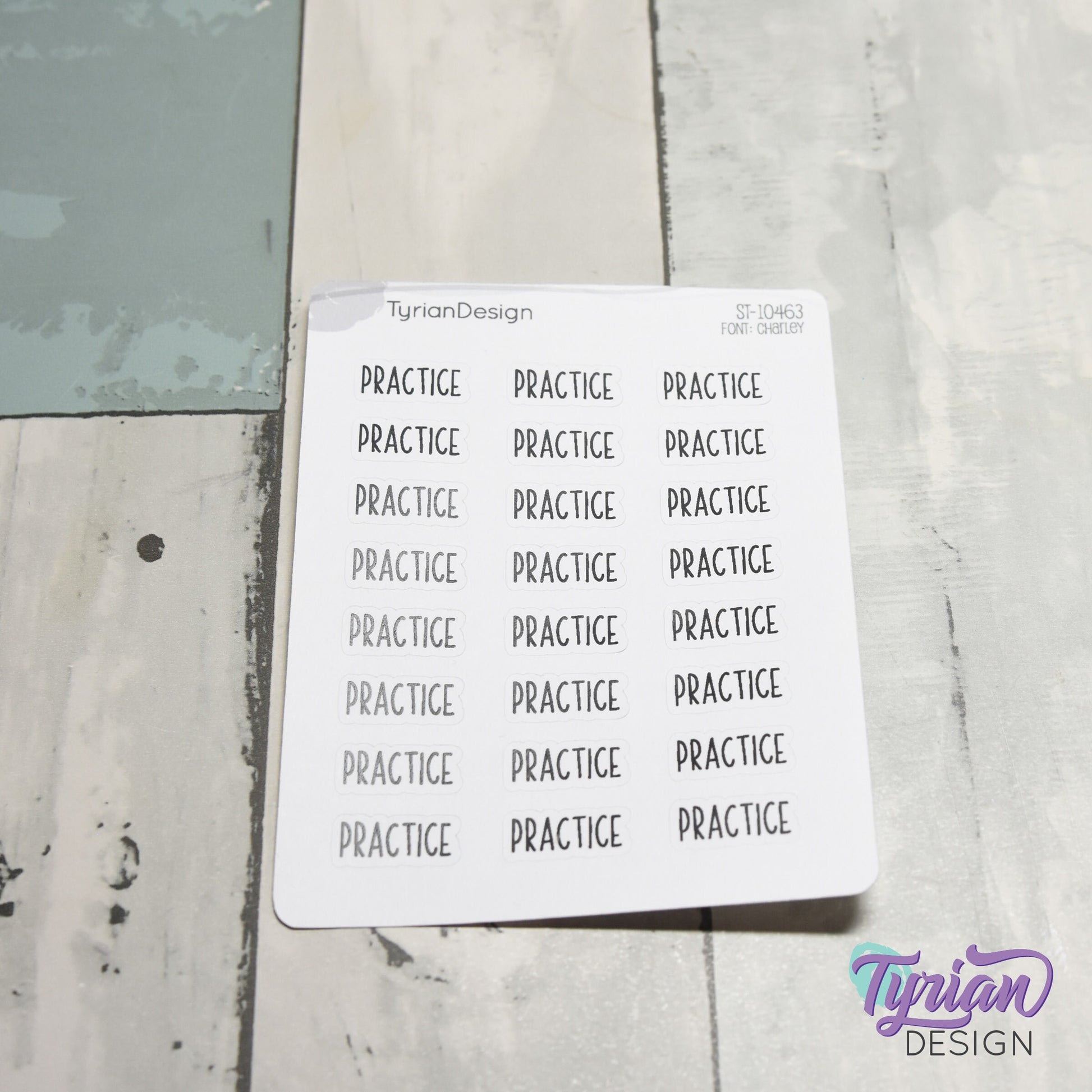 Practice Stickers | Keep track of practice schedules | .76" x .34" each | 3.5 x 4.5" Sheet | 24 Stickers | Charley Font