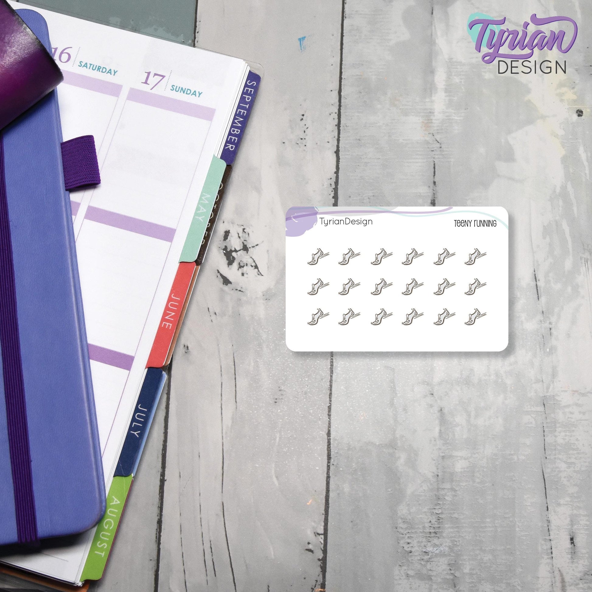 Running Stickers | Tiny Walking stickers on a mini sheet | 18 stickers | .44 x .36" each | Athletic shoe icon sticker | White or Clear Matte