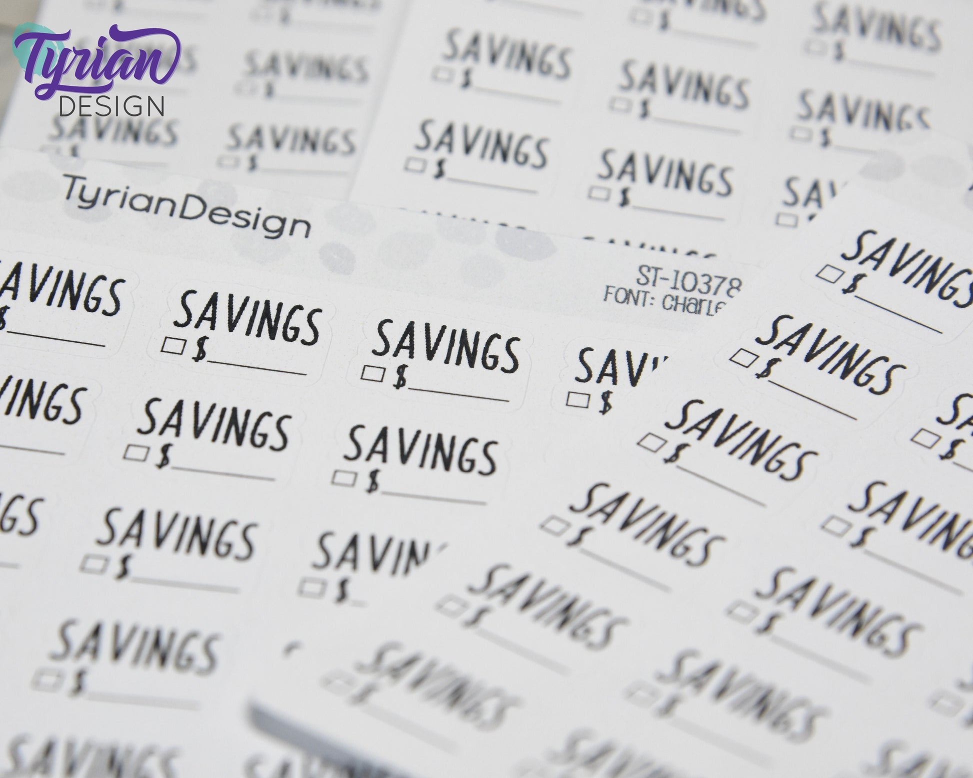 Savings Stickers | Budget stickers | 24 Stickers | .73" x .54" Each | 3.5 x 4.5" Sheet | Charley Font | White or Clear