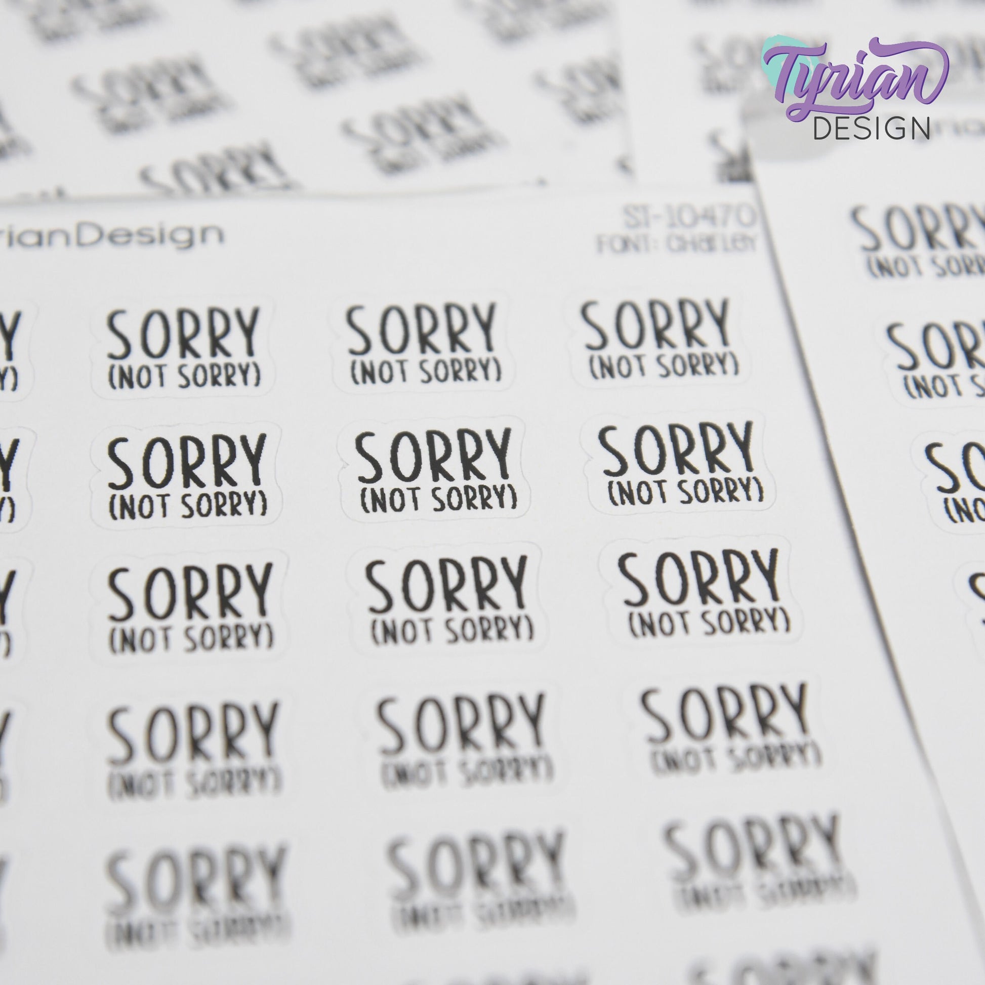 Sorry, Not Sorry Stickers | 24 Stickers | .62" x ..53" Each | Charley Font