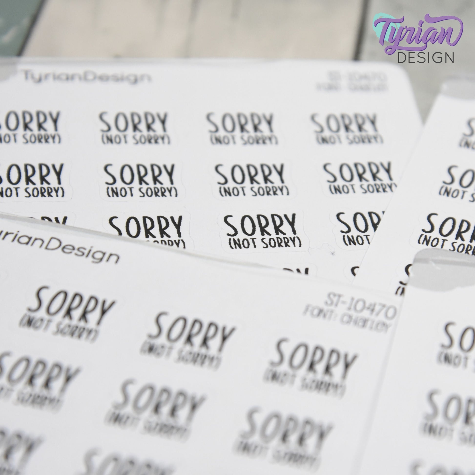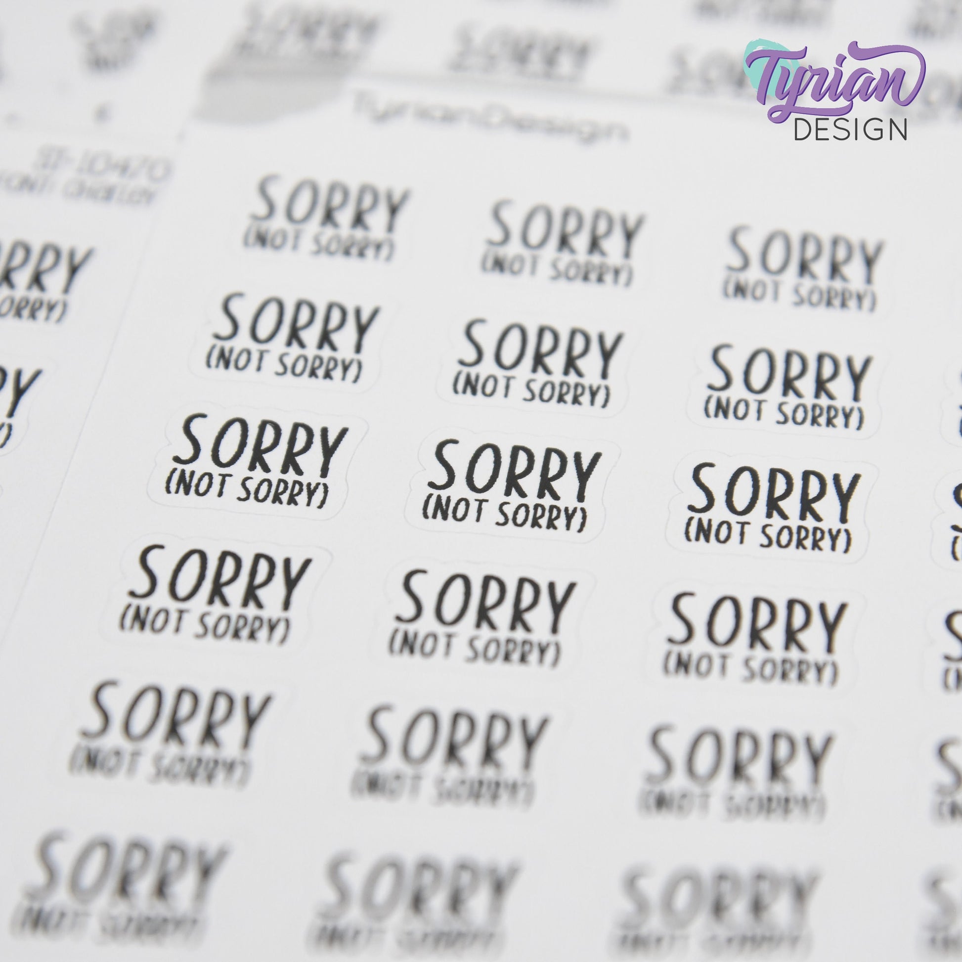 Sorry, Not Sorry Stickers | Sarcasm Stickers | 24 Stickers | .62" x ..53" Each | 3.5 x 4.5" Sheet | White or Clear Matte | Charley Font
