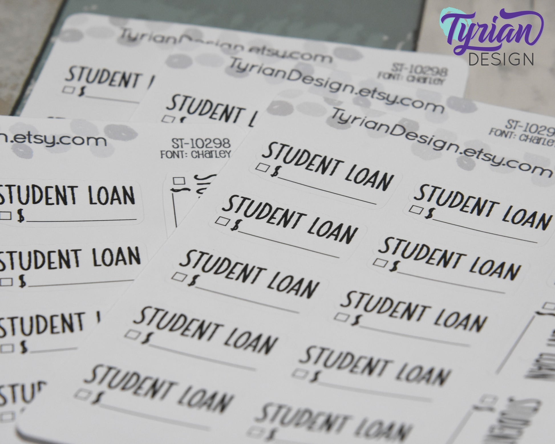 Student Loan Stickers Sheet for Planners and Journal | Black Type, clear or white matte stickers | Student Loan Budget Stickers