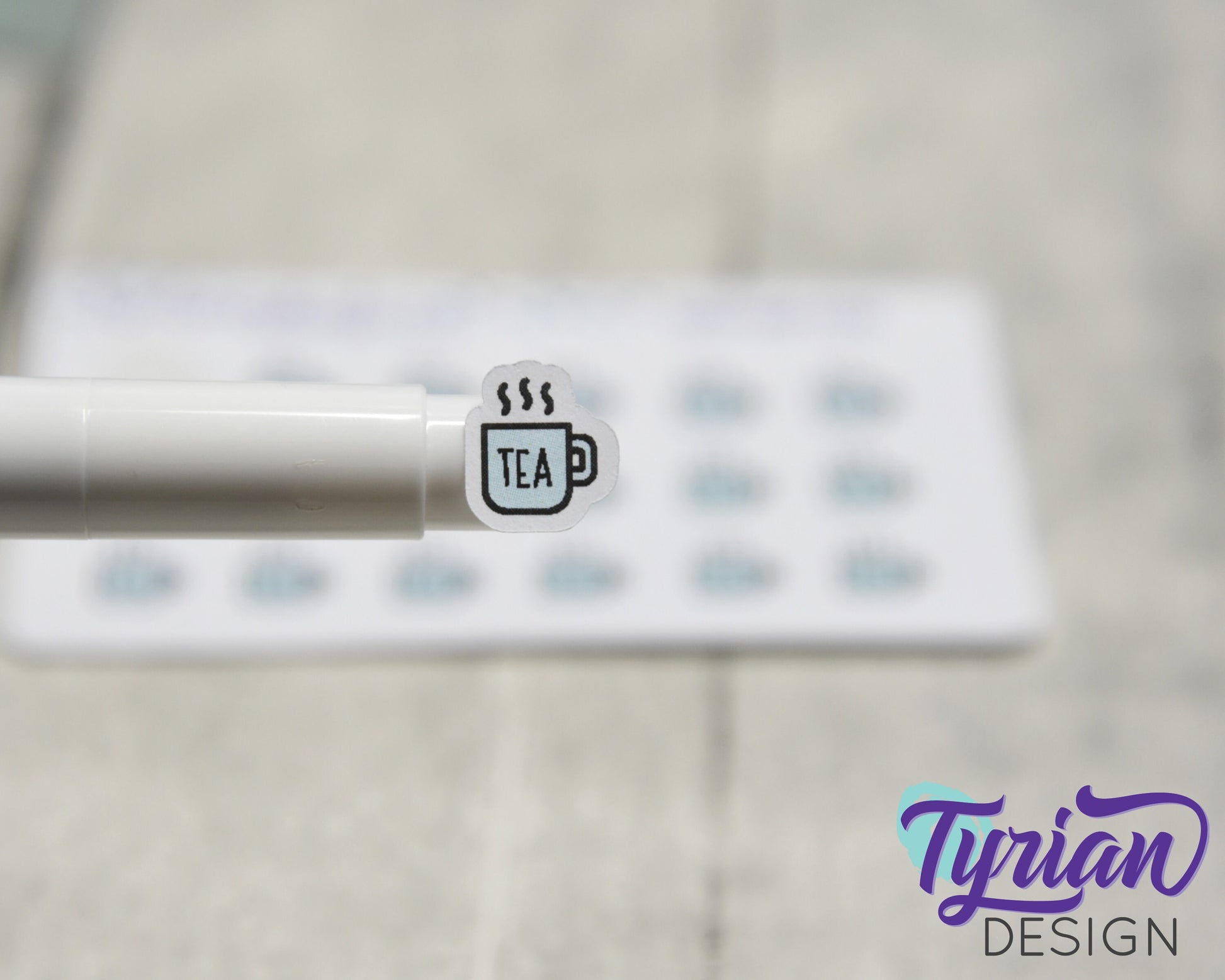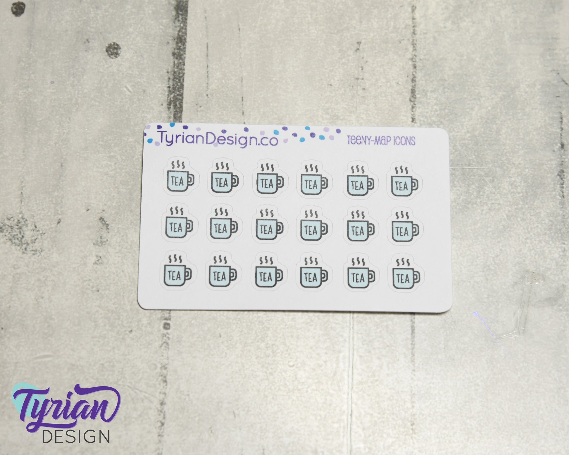 Tea Icon Stickers |Tiny Tea Cup on a mini sheet | Here's the Tea | Icon Sticker | pocket planning | White or Clear Matte