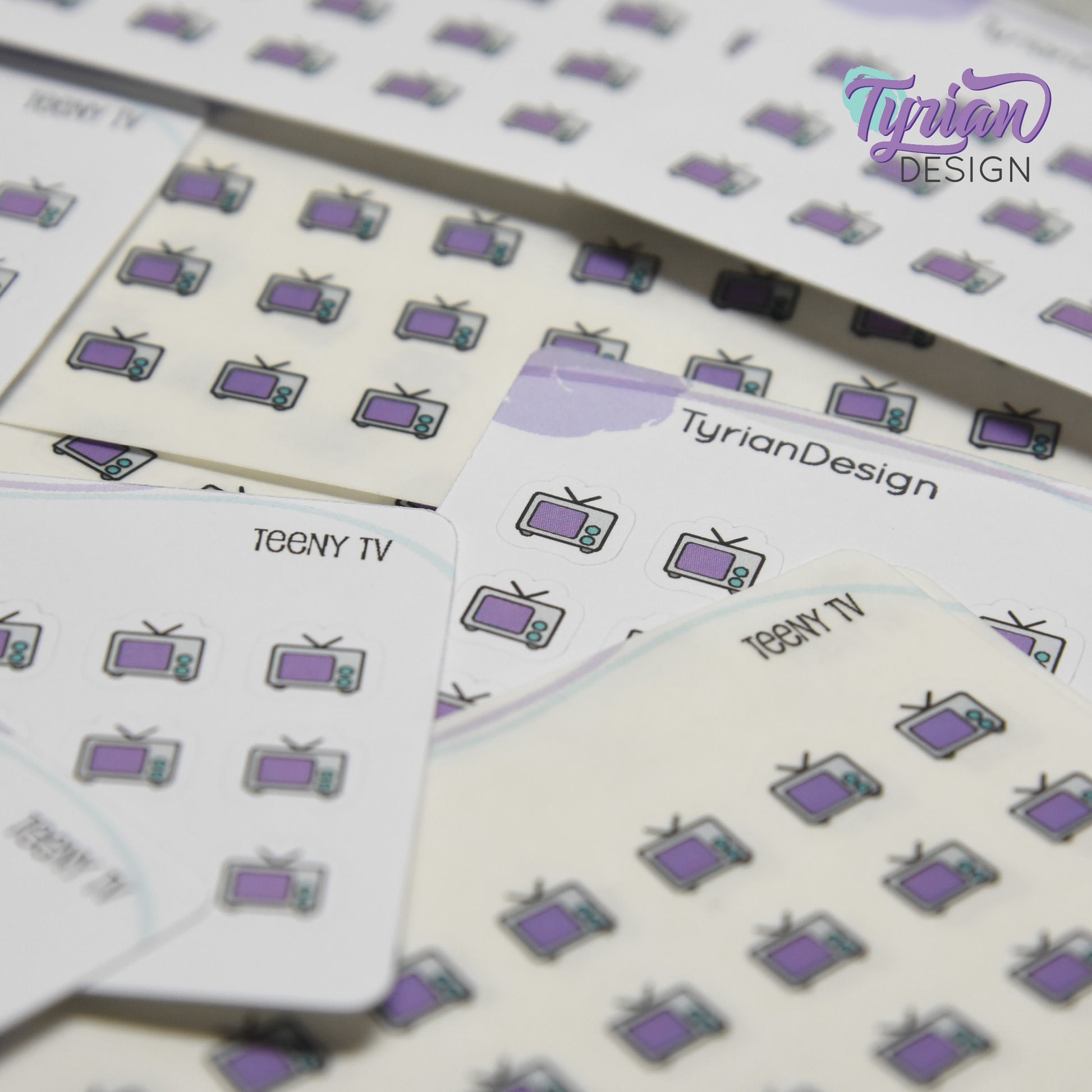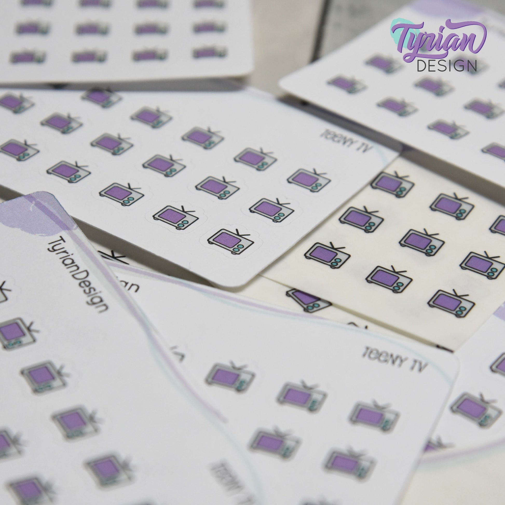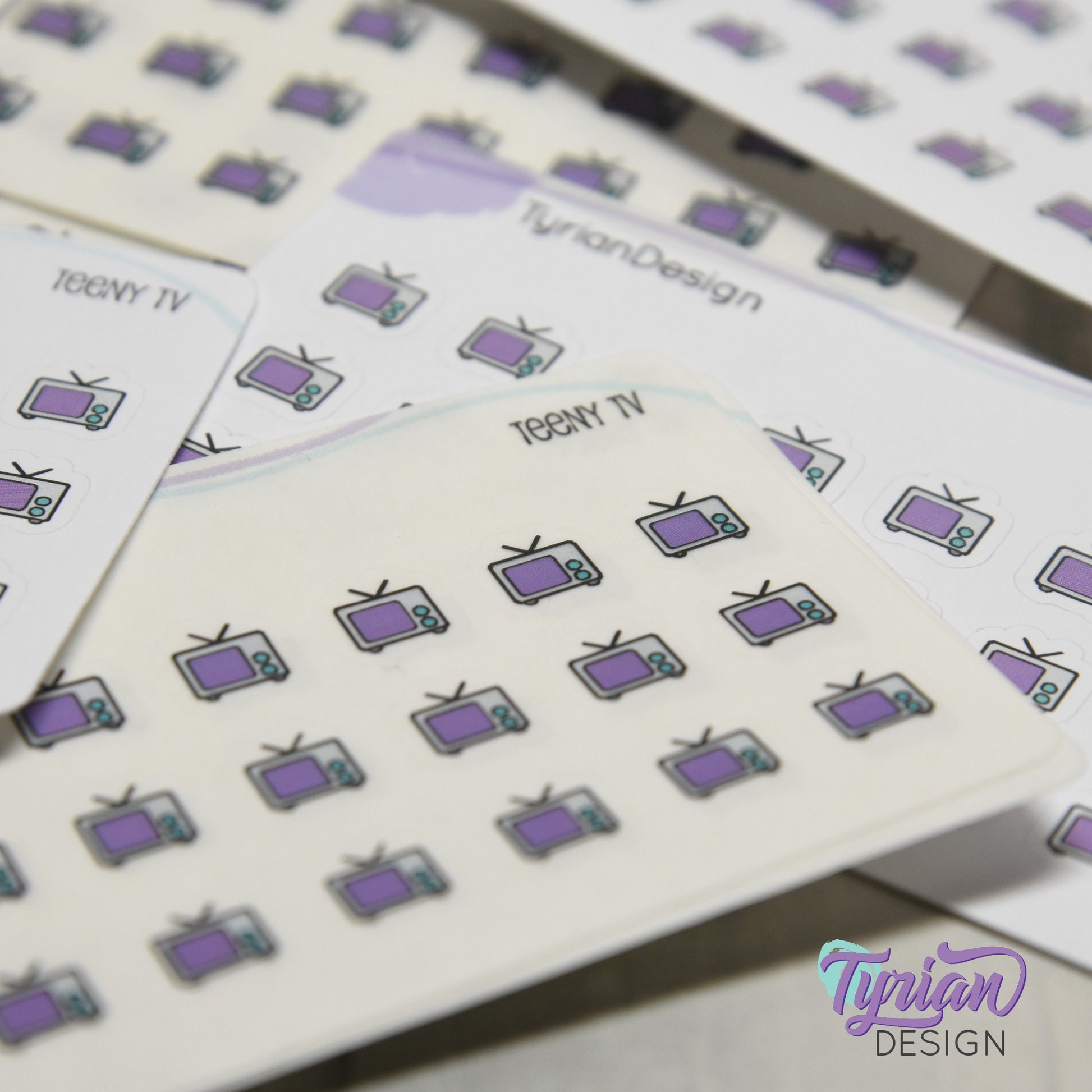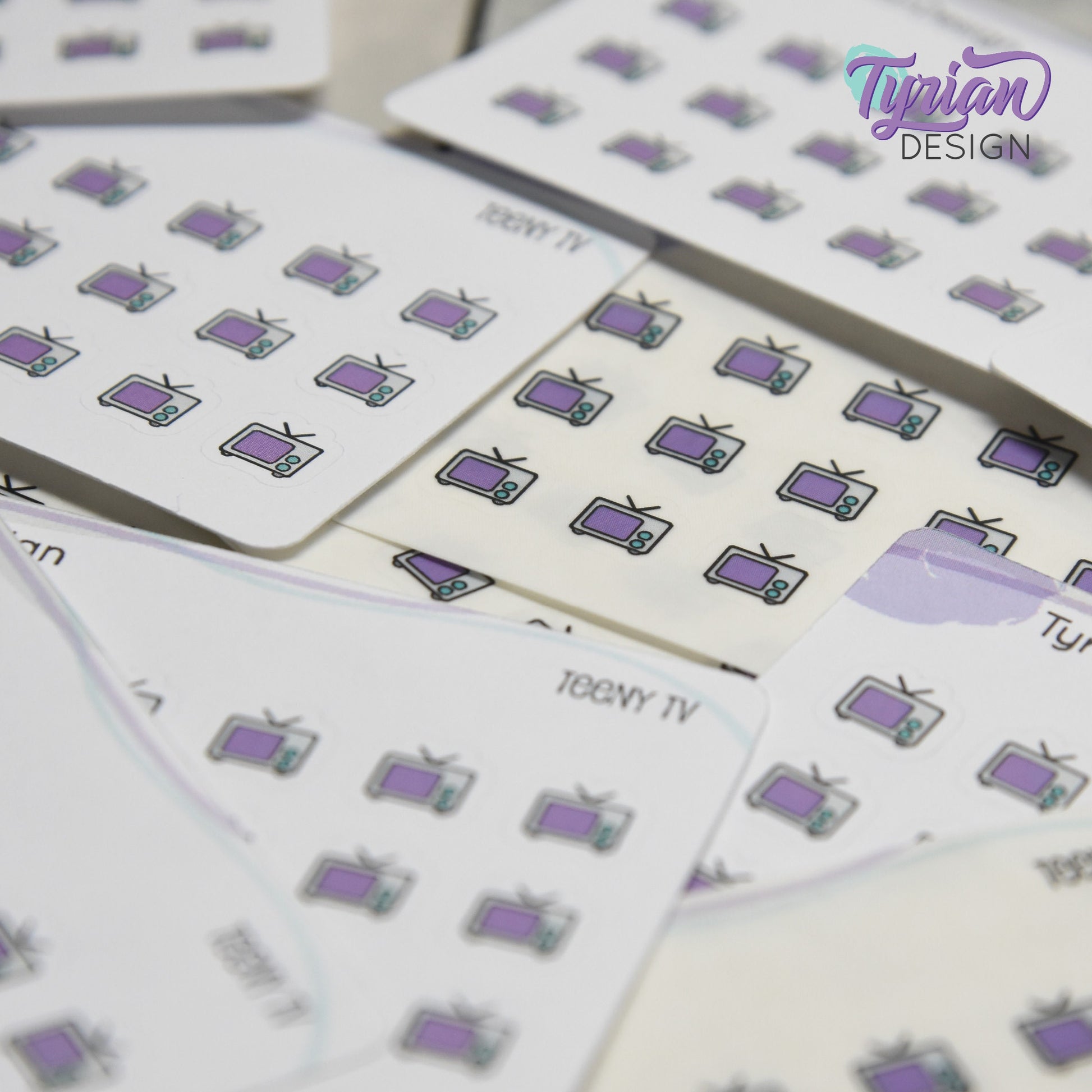 Teeny TV Stickers | Tiny Icon TV stickers on a mini sheet | 21 stickers | .37 x .36" each | Binge Watch icon sticker | White or Clear Matte