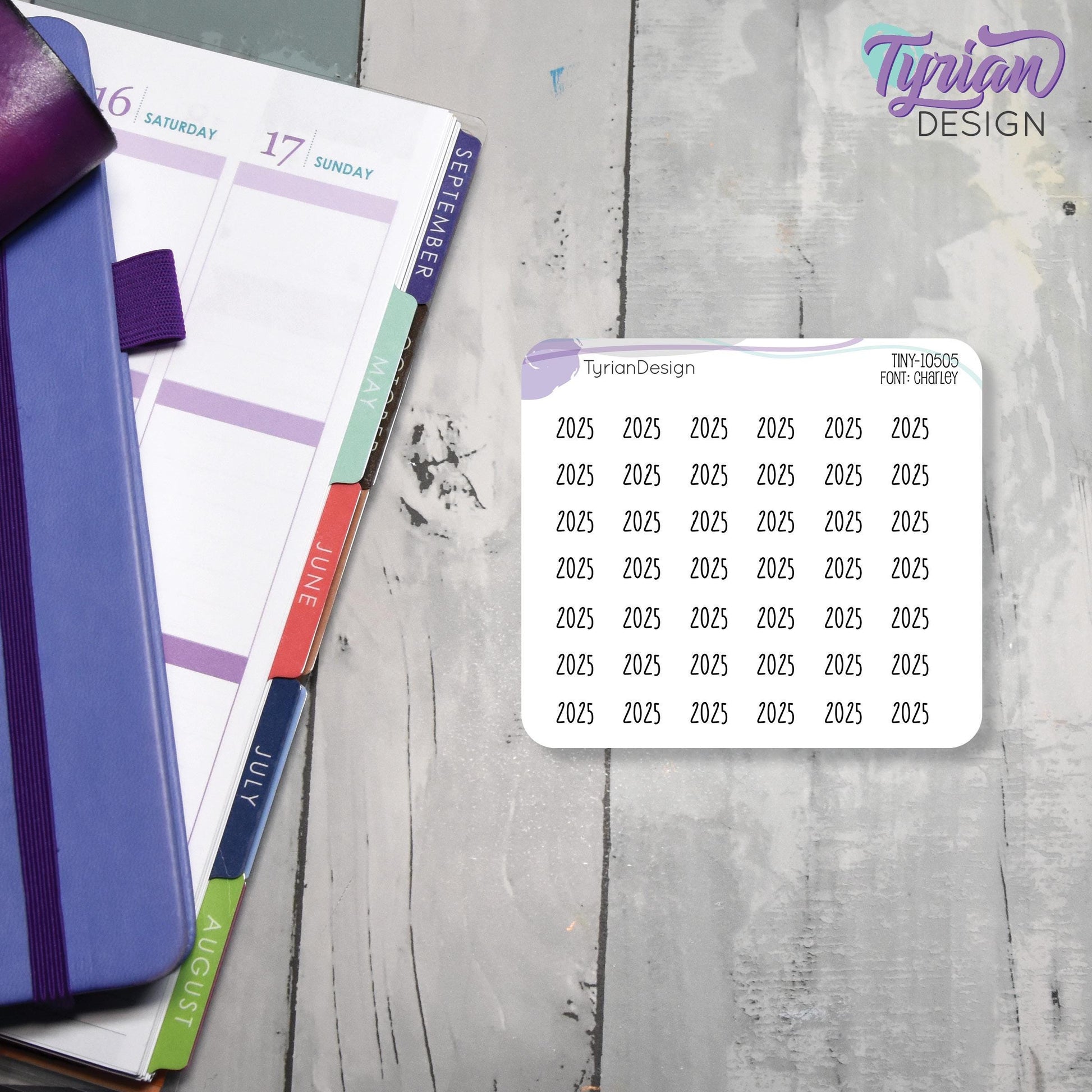 Tiny 2025 Stickers | Year Stickers | 42 Stickers | .37 x .27" each sticker | Clear or White matte | Planner Stickers | Font: Charley