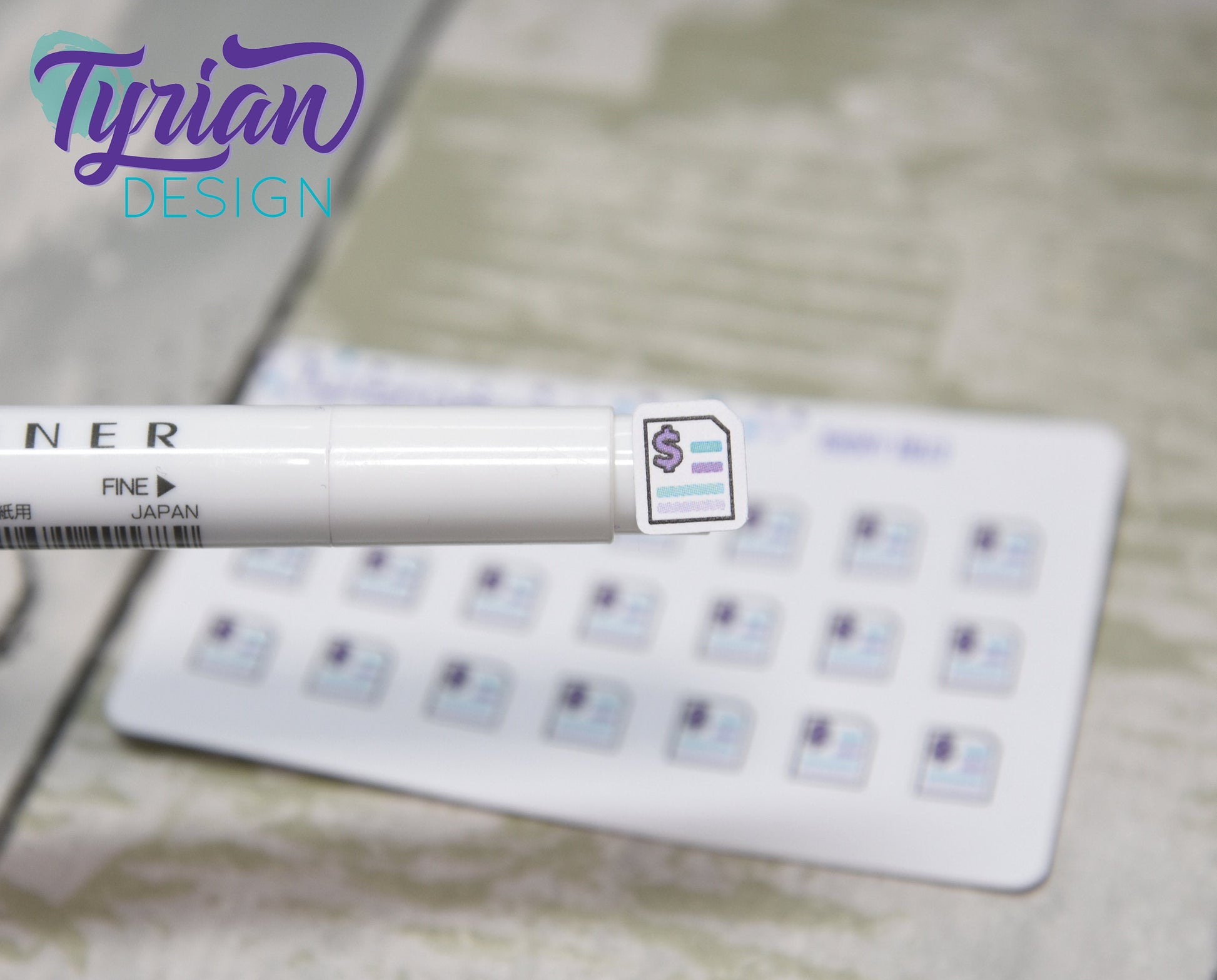 Tiny Bill Stickers | Generic Bill payment stickers on a mini sheet | 21 stickers | .4 x .4" each | Budget planner sticker