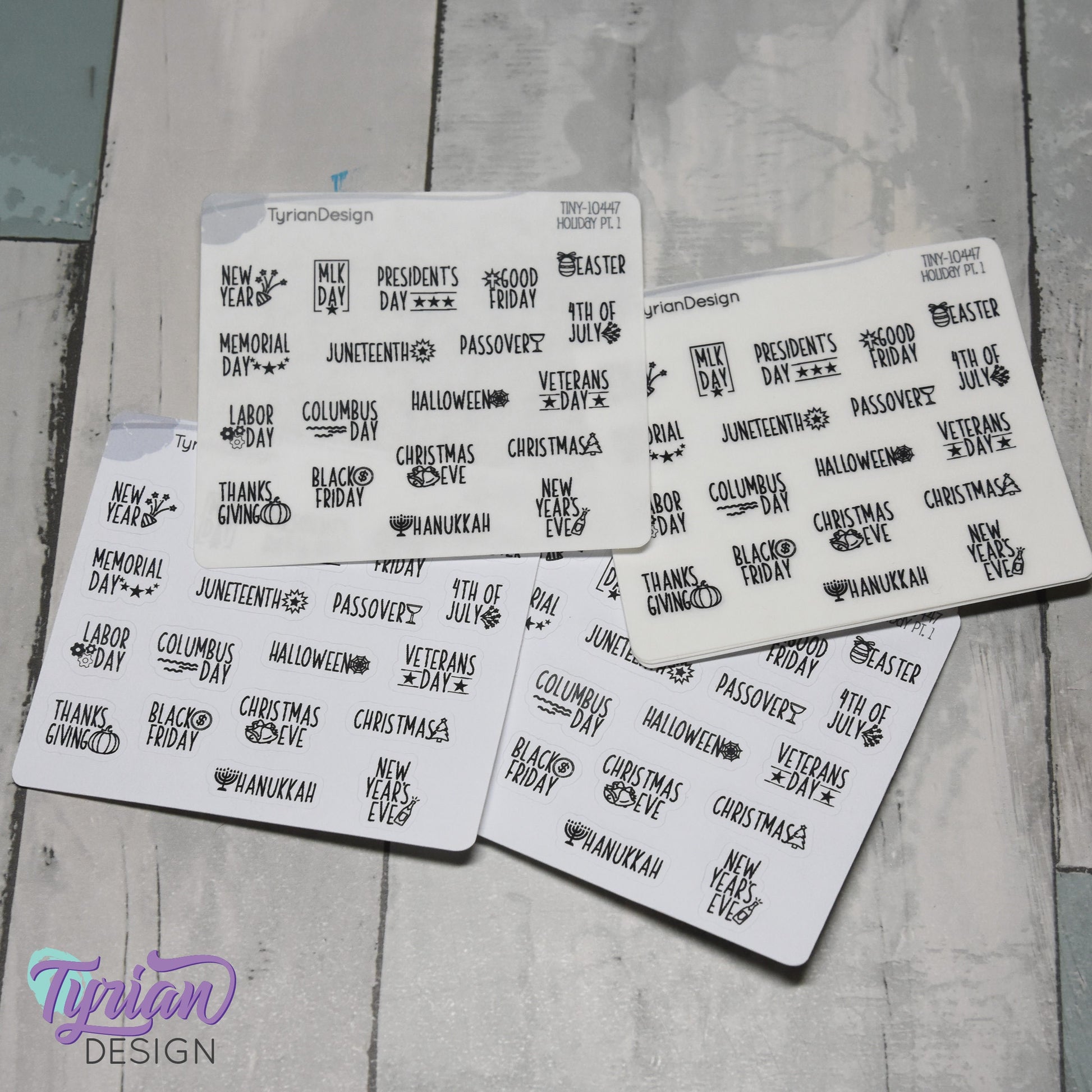 Tiny Holiday Stickers | Icon Holiday Stickers Pt 1 | 19 Stickers | Clear or White matte | Planner Stickers | Font: Charley