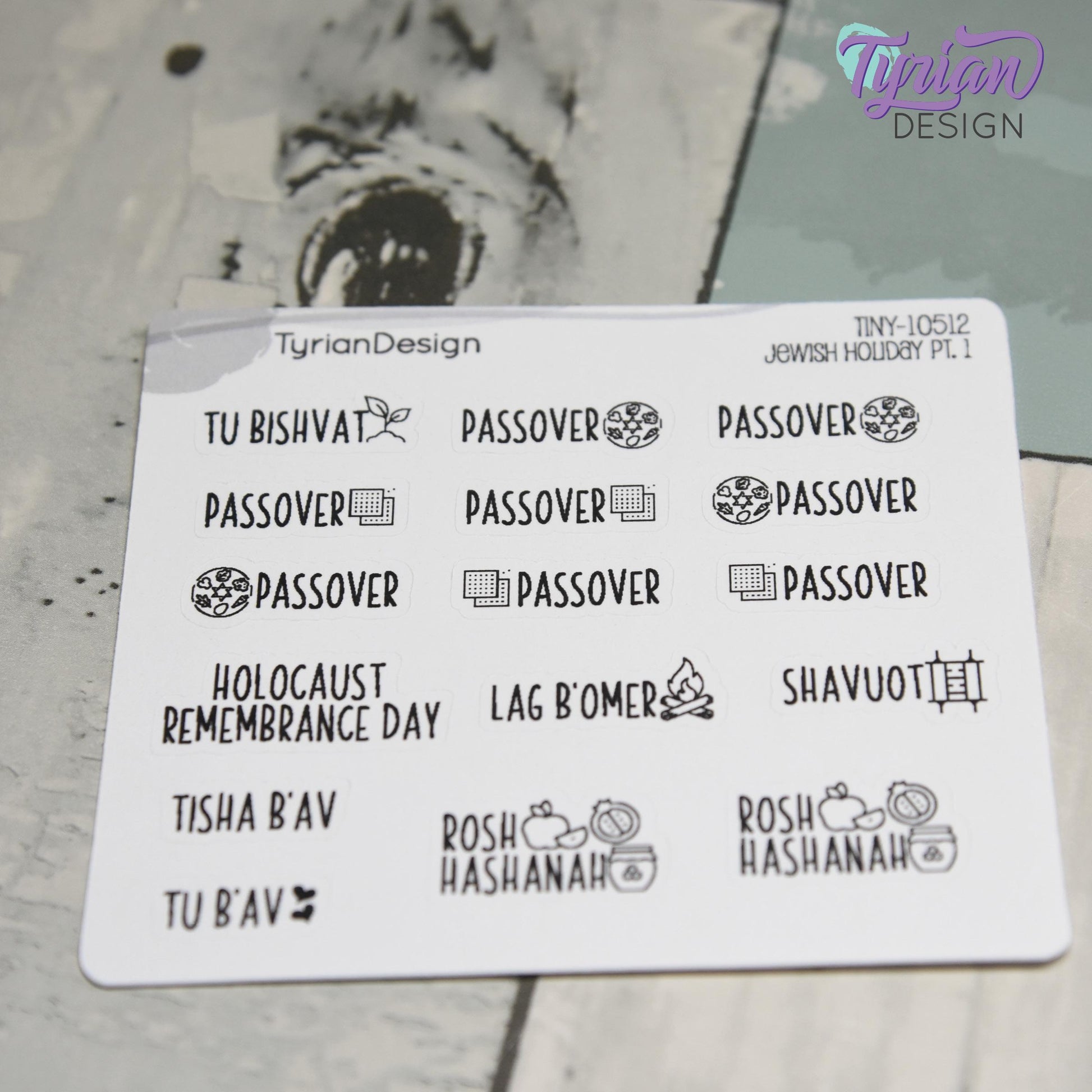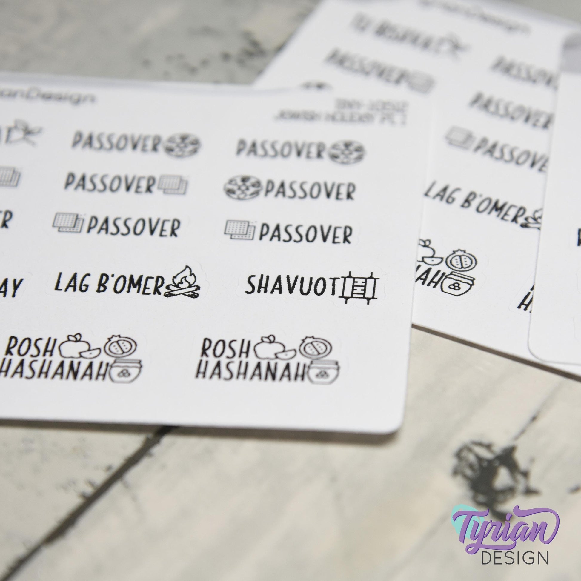Tiny Jewish Holiday Stickers | Jewish Icon Holiday Stickers Pt 1 | 16 Stickers | Clear or White matte | Planner Stickers | Font: Charley