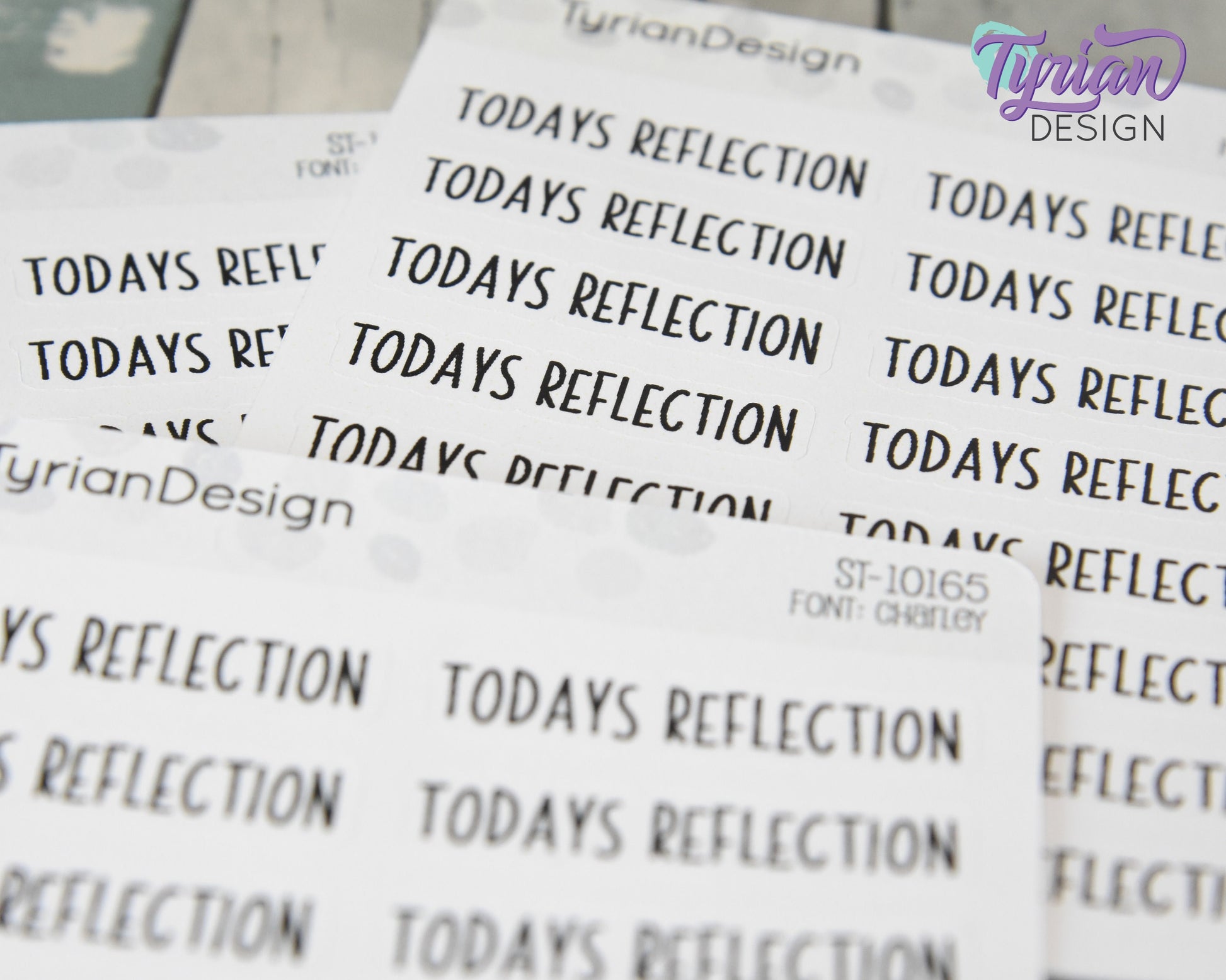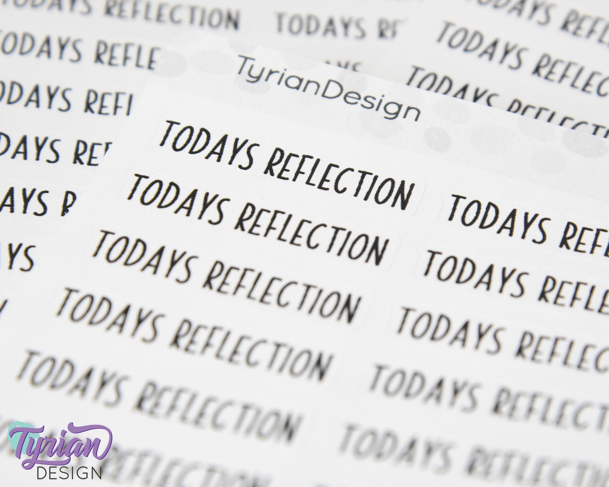 Todays Reflection Stickers | Reflection Stickers | 16 Stickers | 1.5" x .35" | 3.5 x 4.5" Sheet | Charley Font | White or Clear