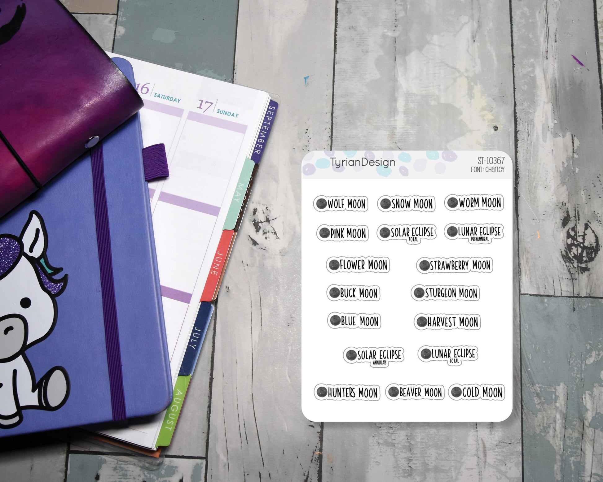 Undated Full Moons & Eclipses Icon Stickers | Full Moon and Eclipse Moons | Moon stickers Great for Planners, journals and calendars