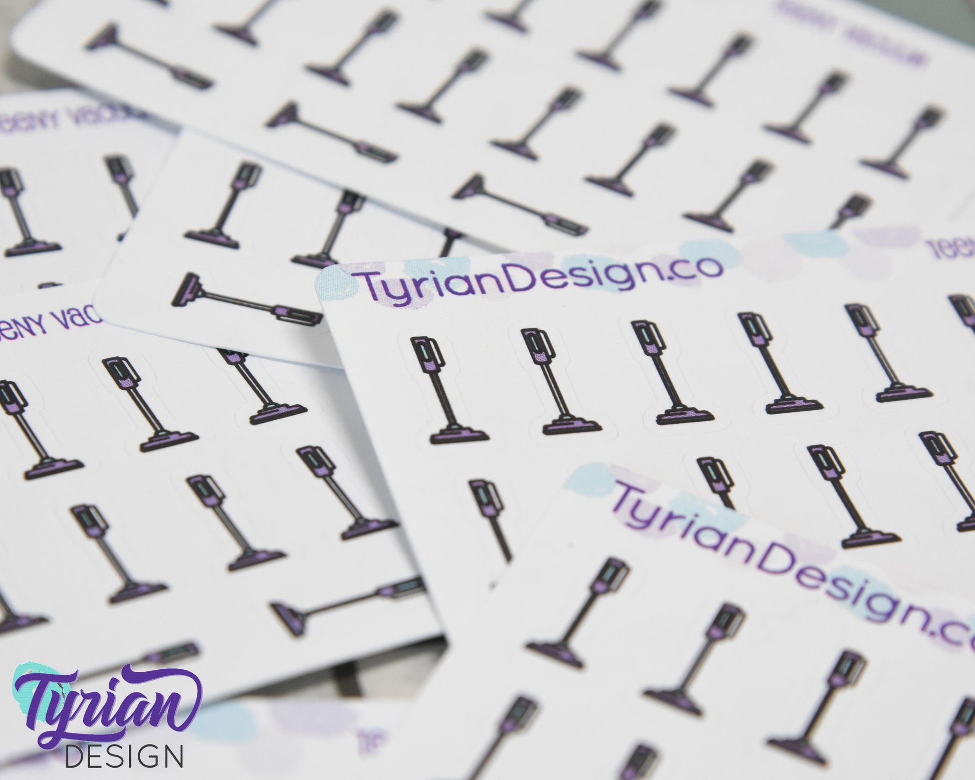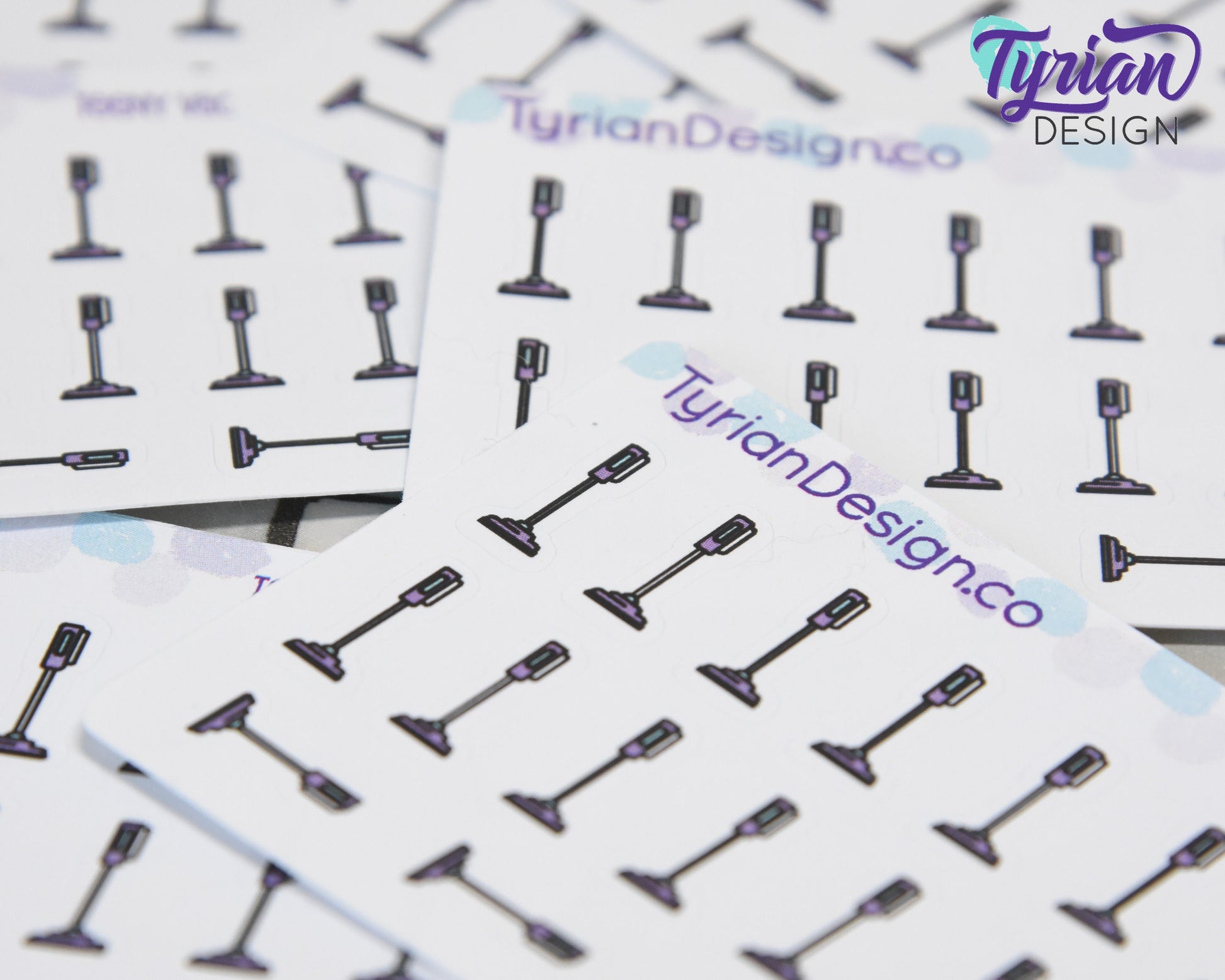 Vacuum Stickers | Tiny Stick Vacuum stickers on a mini sheet | 20 stickers | .3 x .6" each | Vacuum icon sticker | White or Clear Matte