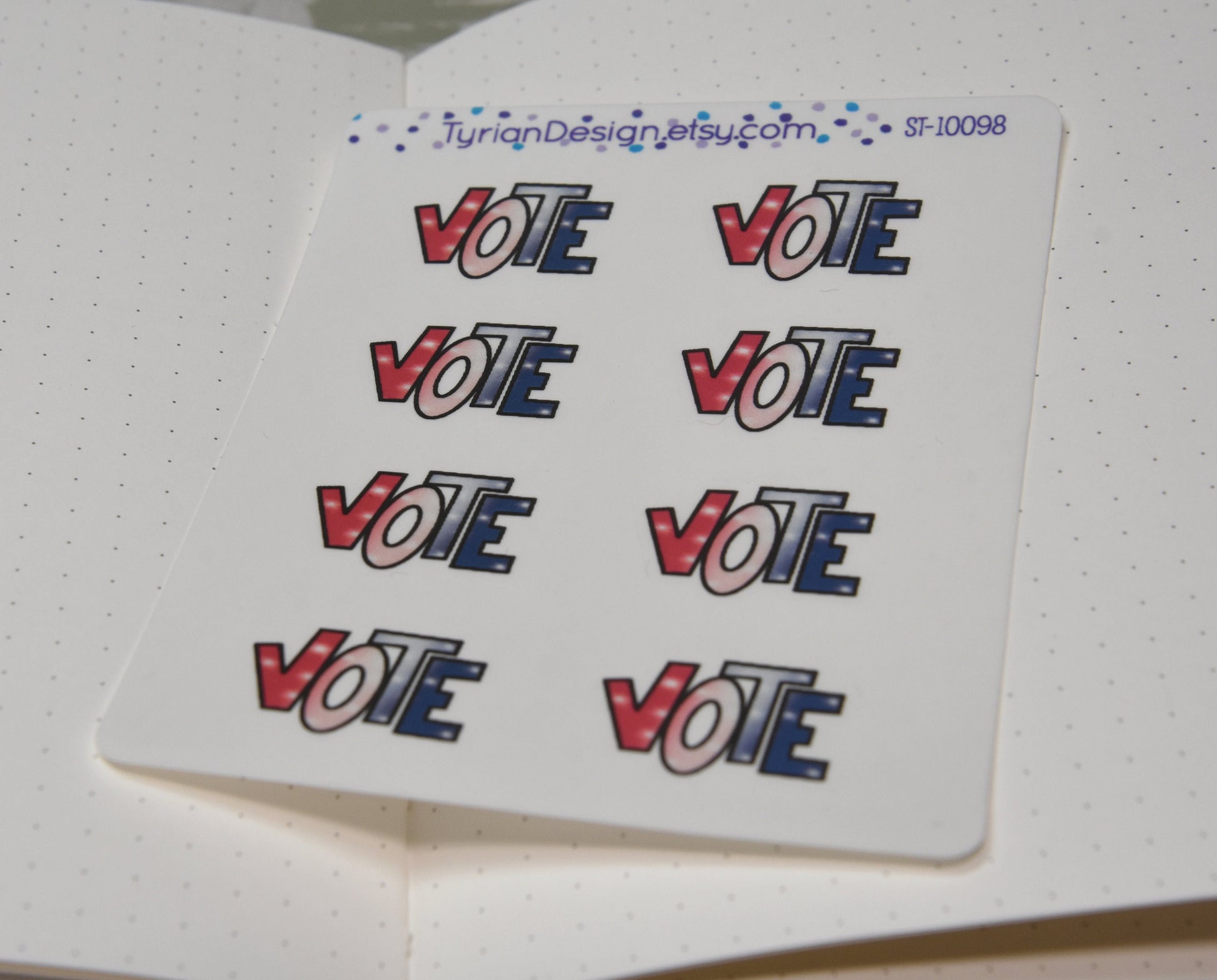 Vote stickers, hand drawn Red, white and blue stickers, Voting stickers on clear or white matte stickers