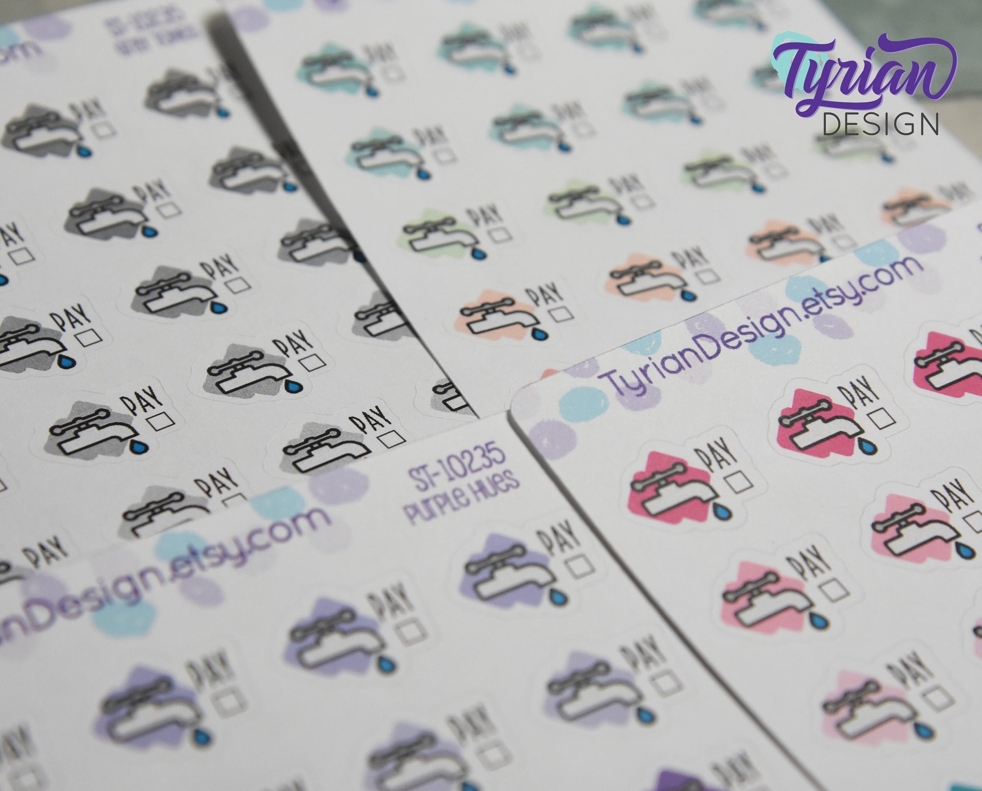 Water Payment Stickers. Different color options. Keep track of the Water Bill with stickers for budget Planners, journals and calendars