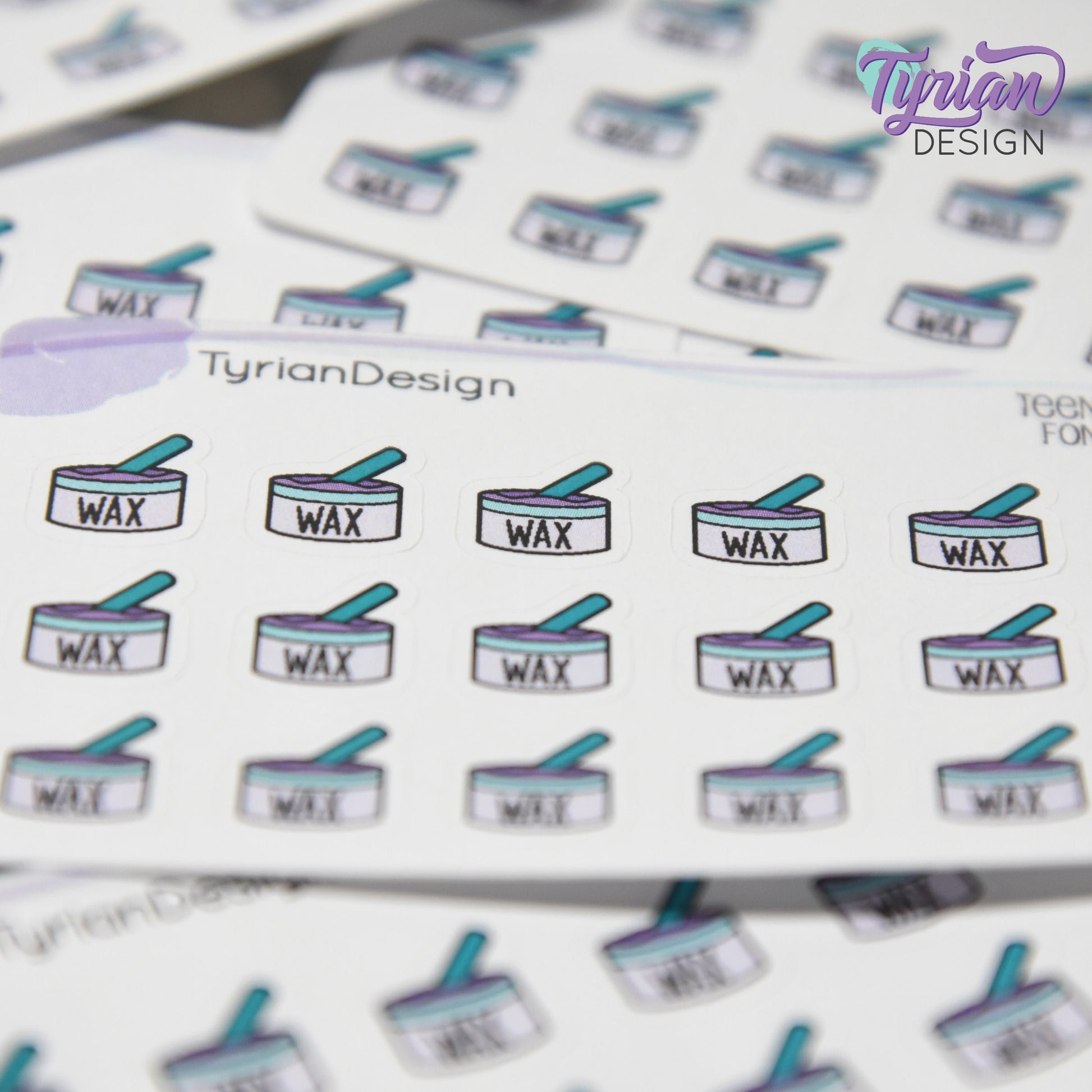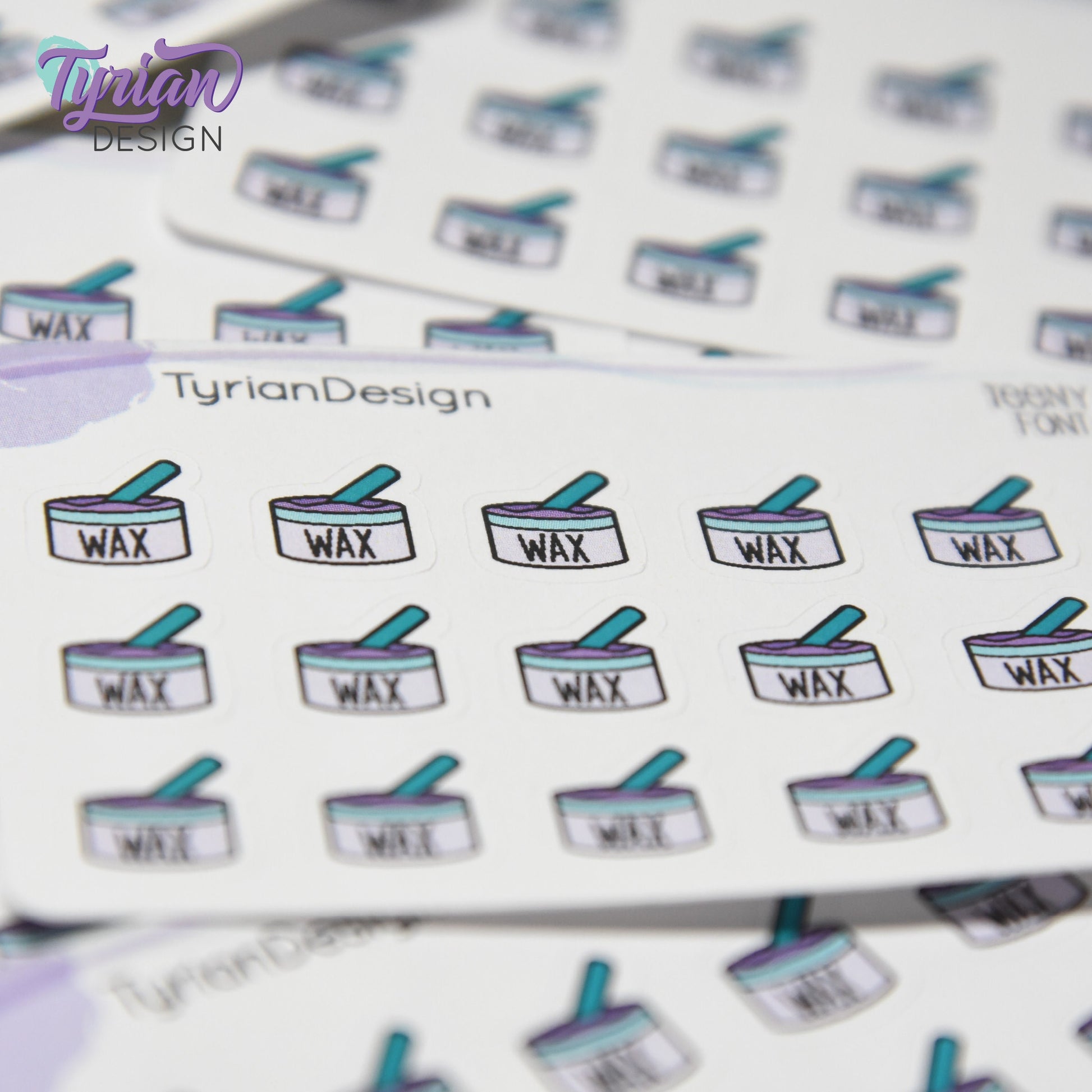 Wax Stickers | Tiny Bikini Wax stickers | Mini sheet | 18 stickers | .43 x .5" each | Waxing Apt. Tracking icon | White or Clear Matte