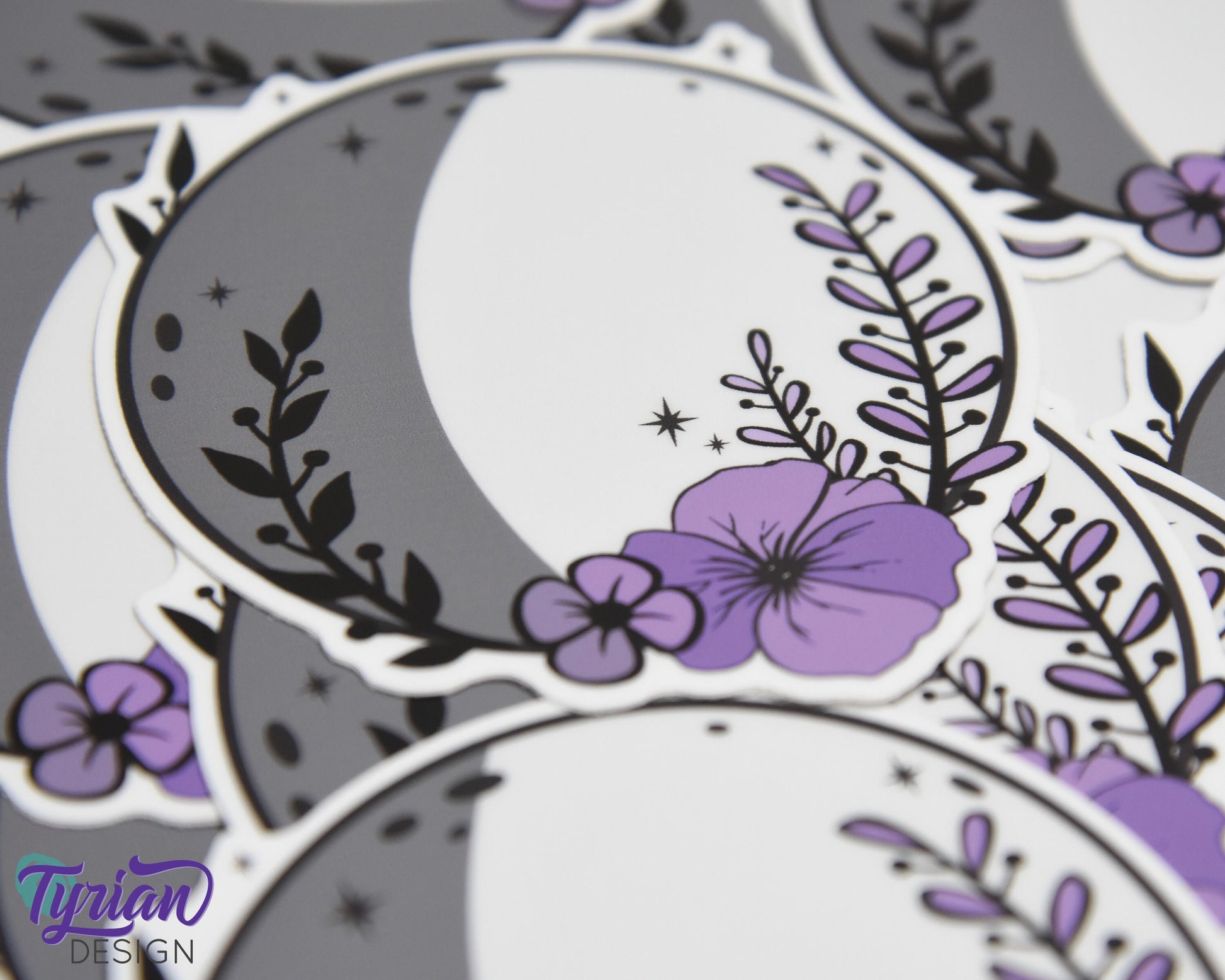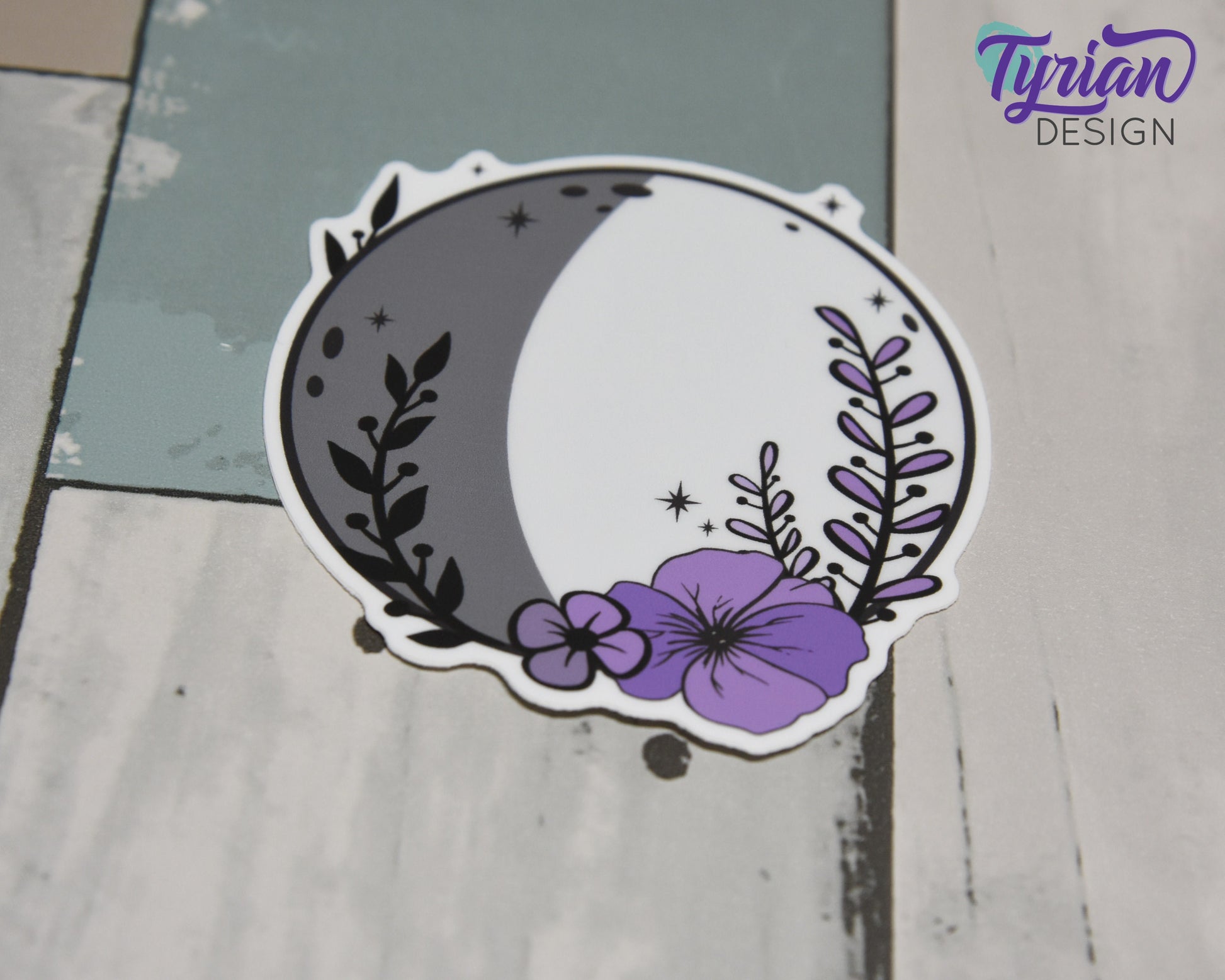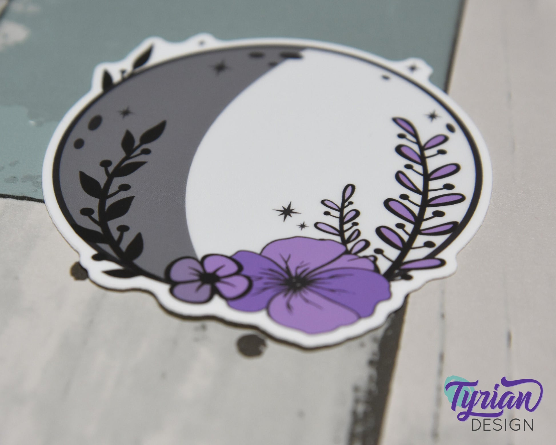 Waxing Gibbous Moon Vinyl Sticker | High quality weather proof vinyl | 3" | Moon with Flowers sticker | Moon Sticker