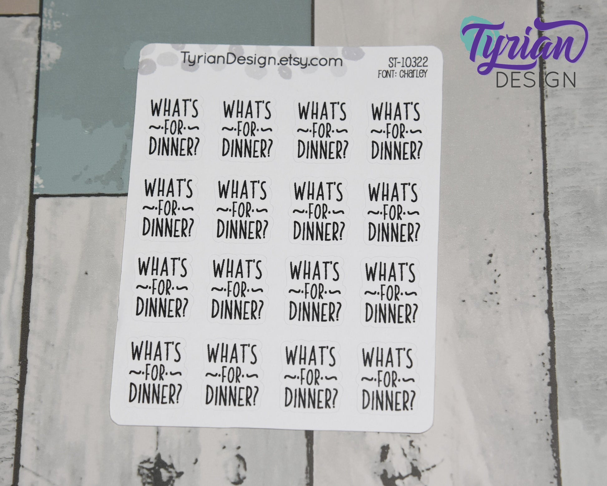 What's for Dinner Sticker | .7 x .82" Sticker size | 16 stickers | Charlie Font