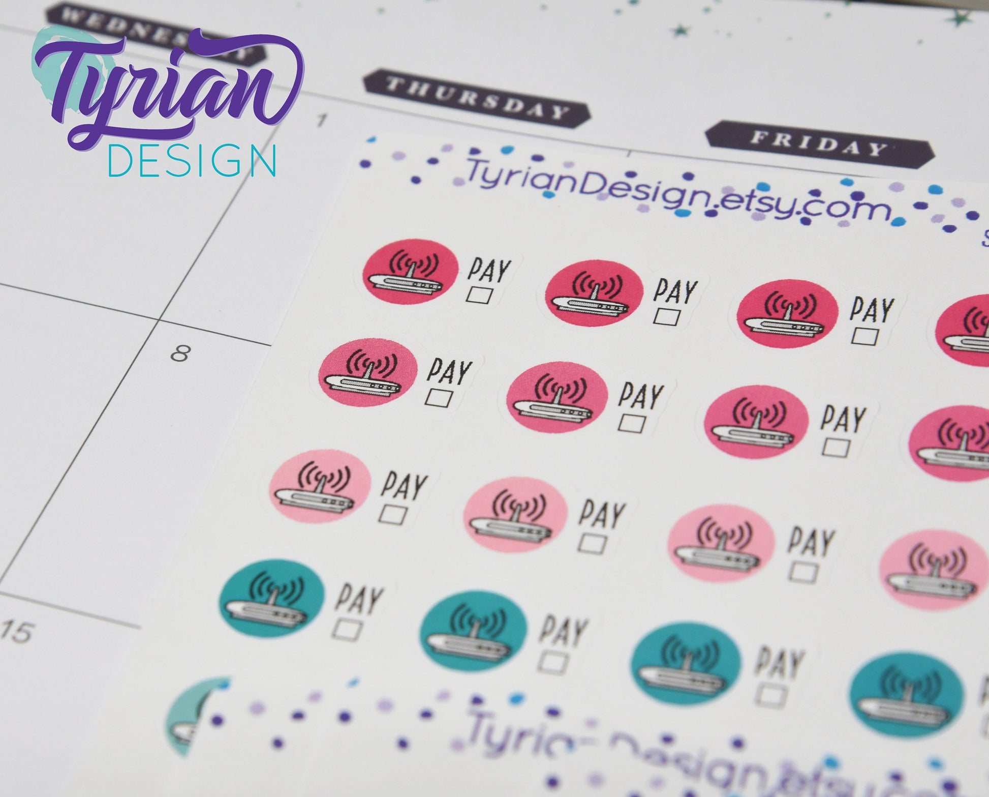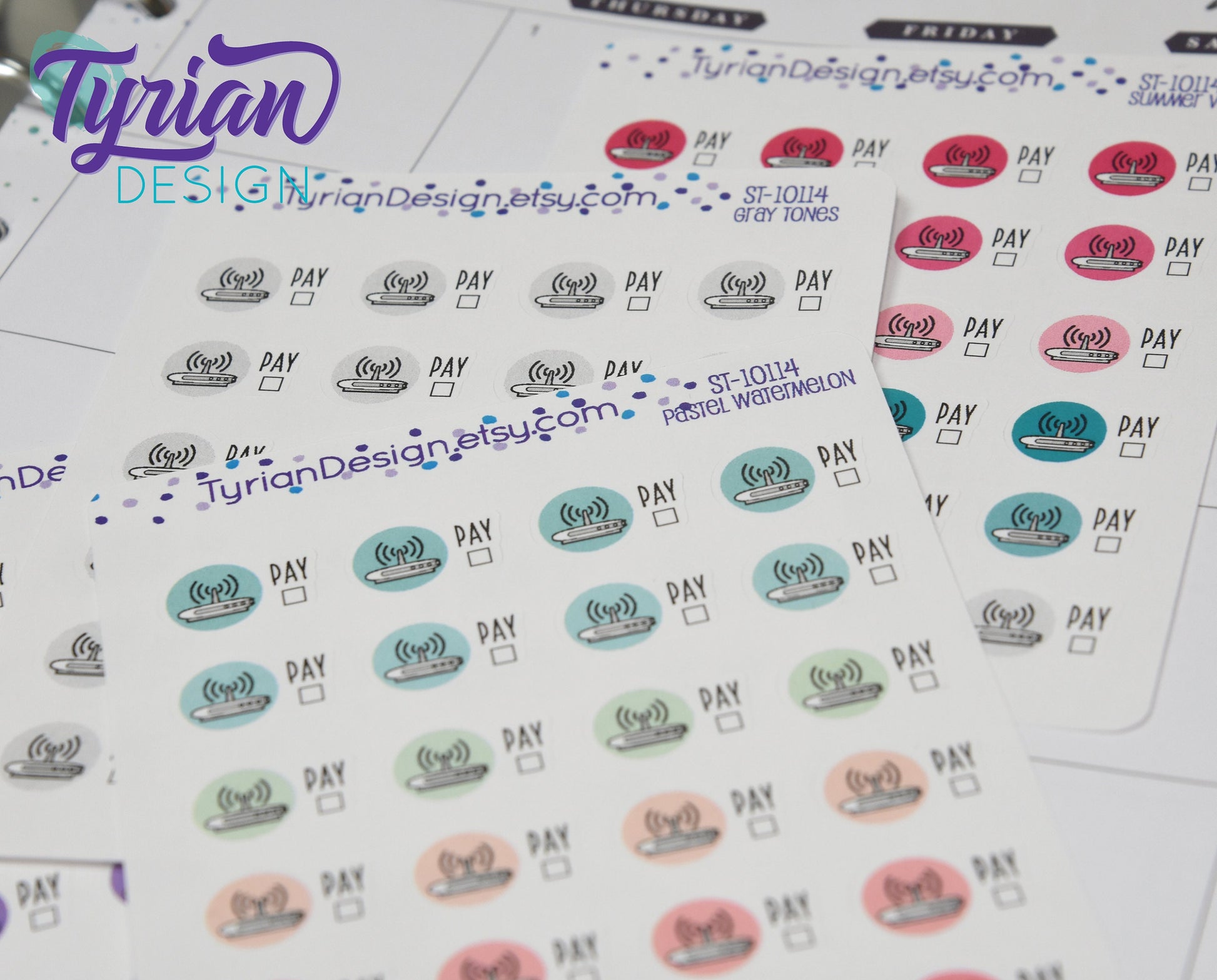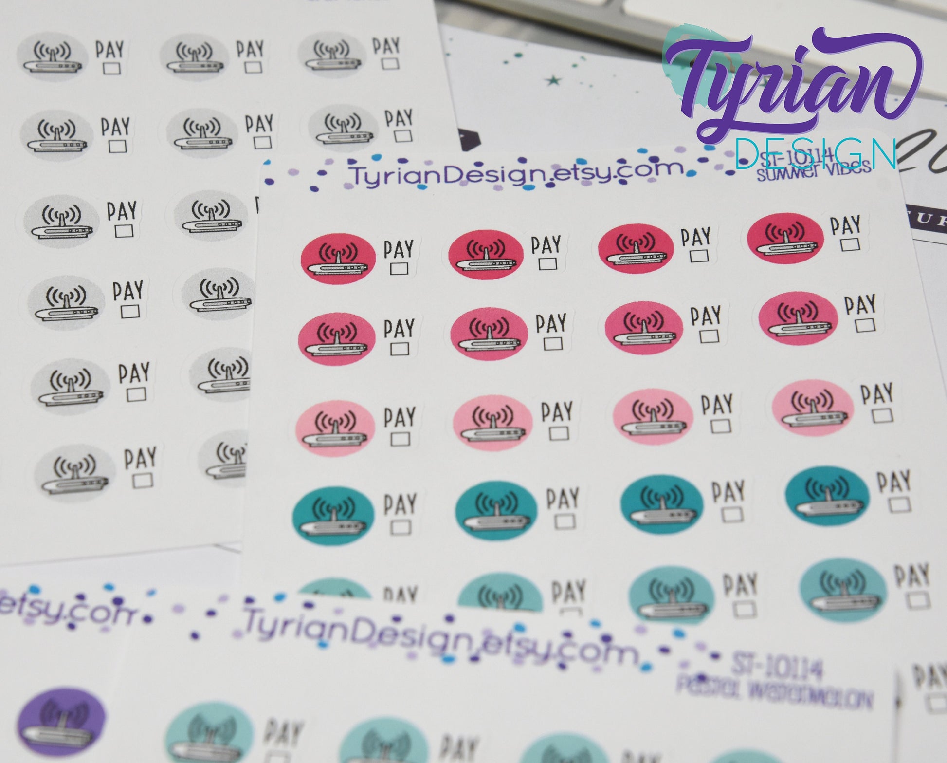 Wifi Internet Payment Stickers. Different color options. Keep track of payments stickers Great for budget Planners, journals and calendars